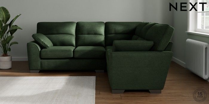 7.2.10 Buy Stamford Highback Medium Corner Sofa - Universal Luxe Chenille Dark Green Large Square Angle - Gunmetal from the Seasons online shop Click here to use our website with more accessibility support, for example screen readers