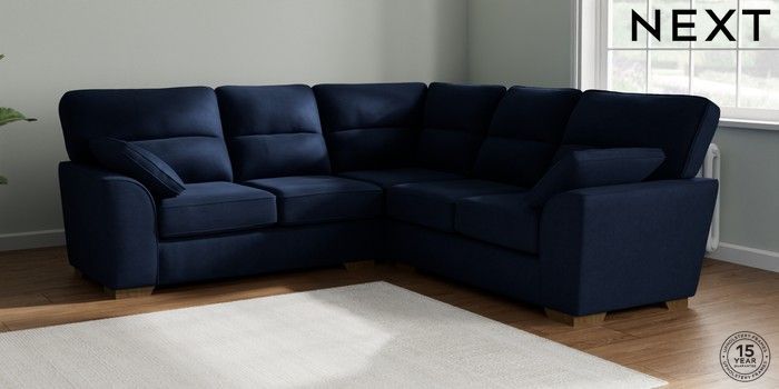 7.2.10 Buy Stamford Highback Medium Corner Sofa - Universal Luxe Chenille Navy Blue Large Square Angle - Mid from the Seasons online shop Click here to use our website with more accessibility support, for example screen readers