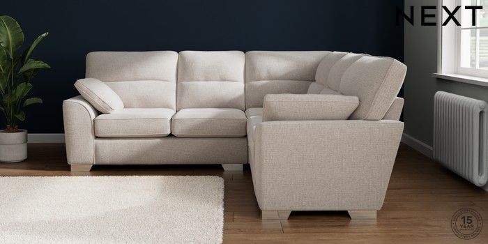 7.2.10 Buy Stamford Highback Medium Corner Sofa - Universal Multi Weave Oyster Large Square Angle - Chrome Metal from the Seasons online shop Click here to use our website with more accessibility support, for example screen readers