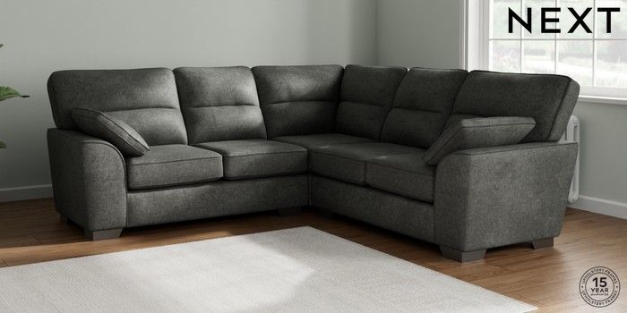 7.2.10 Buy Stamford Highback Medium Corner Sofa - Universal Plush Chenille Dark Grey Large Square Angle - Gunmetal from the Seasons online shop Click here to use our website with more accessibility support, for example screen readers