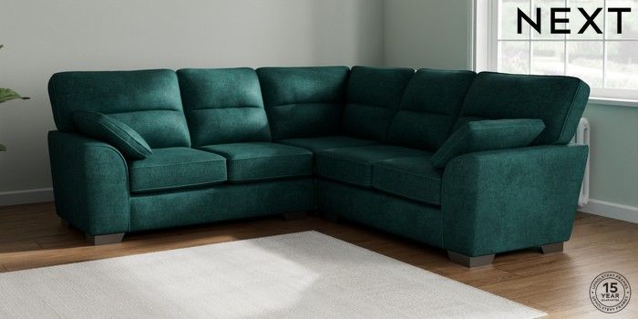 7.3.1 Buy Stamford Highback Medium Corner Sofa - Universal Plush Chenille Dark Teal Green Large Square Angle - Gunmetal from the Seasons online shop Click here to use our website with more accessibility support, for example screen readers