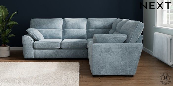 7.2.10 Buy Stamford Highback Medium Corner Sofa - Universal Plush Chenille Light Blue Large Square Angle - Dark from the Seasons online shop Click here to use our website with more accessibility support, for example screen readers