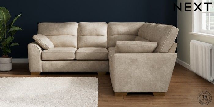 7.2.10 Buy Stamford Highback Medium Corner Sofa - Universal Plush Chenille Light Natural Large Square Angle - Brushed Brass from the Seasons online shop Click here to use our website with more accessibility support, for example screen readers