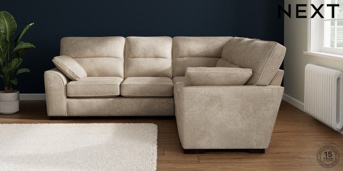 7.2.10 Buy Stamford Highback Medium Corner Sofa - Universal Plush Chenille Light Natural Large Square Angle - Dark from the Seasons online shop Click here to use our website with more accessibility support, for example screen readers
