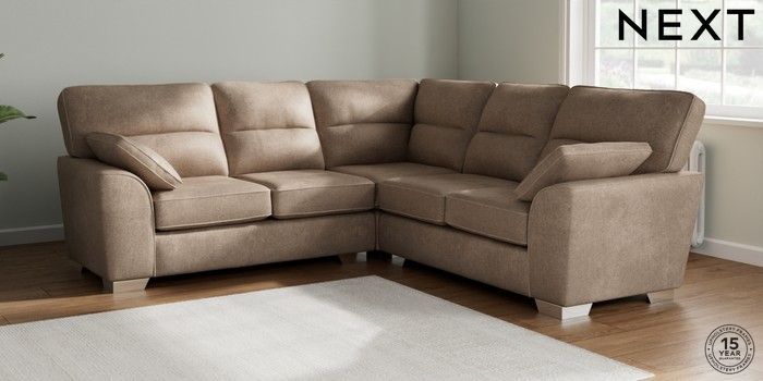 7.2.10 Buy Stamford Highback Medium Corner Sofa - Universal Plush Chenille Mid Natural Large Square Angle - Chrome Metal from the Seasons online shop Click here to use our website with more accessibility support, for example screen readers