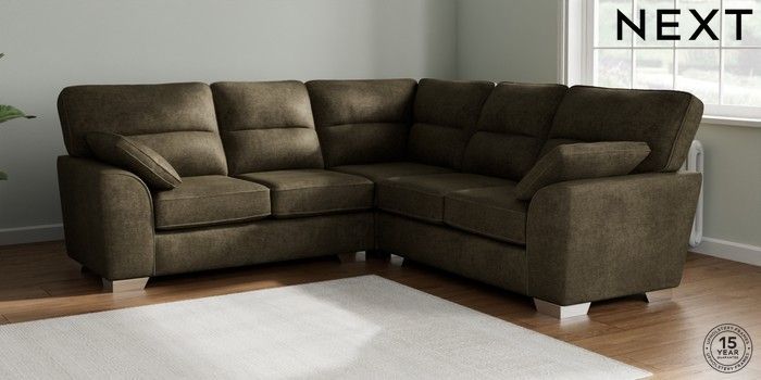 7.2.10 Buy Stamford Highback Medium Corner Sofa - Universal Plush Chenille Moss Green Large Square Angle - Chrome Metal from the Seasons online shop Click here to use our website with more accessibility support, for example screen readers