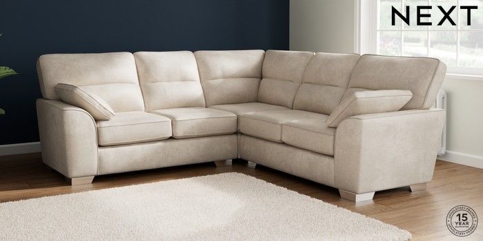 7.2.10 Buy Stamford Highback Medium Corner Sofa - Universal Plush Chenille Oyster Large Square Angle - Chrome Metal from the Seasons online shop Click here to use our website with more accessibility support, for example screen readers