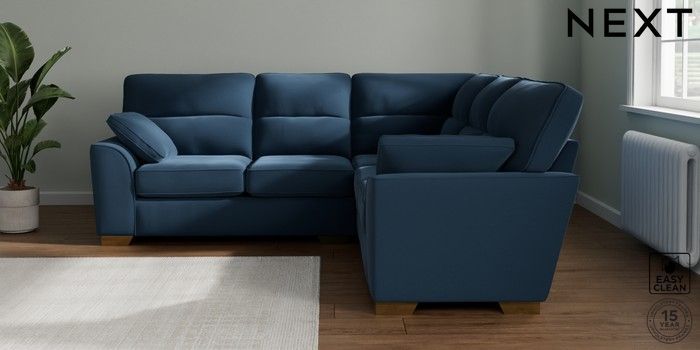 7.3.1 Buy Stamford Highback Medium Corner Sofa - Universal Plush Velvet Easy Clean Airforce Blue Large Square Angle - Brushed Brass from the Seasons online shop Click here to use our website with more accessibility support, for example screen readers