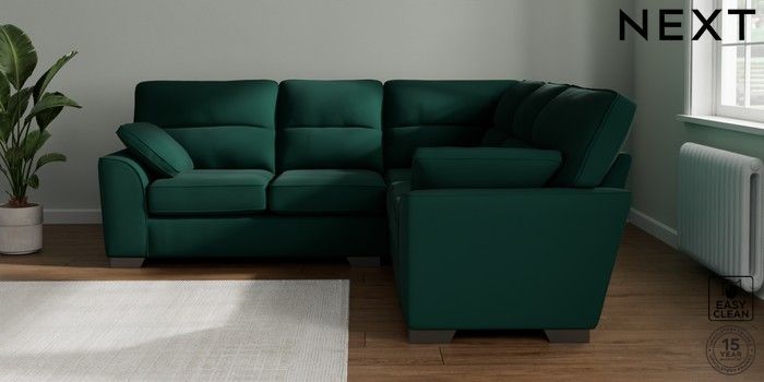 7.3.1 Buy Stamford Highback Medium Corner Sofa - Universal Plush Velvet Easy Clean Bottle Green Large Square Angle - Gunmetal from the Seasons online shop Click here to use our website with more accessibility support, for example screen readers
