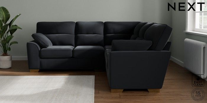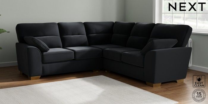 7.3.1 Buy Stamford Highback Medium Corner Sofa - Universal Plush Velvet Easy Clean Charcoal Grey Large Square Angle - Brushed Brass from the Seasons online shop Click here to use our website with more accessibility support, for example screen readers
