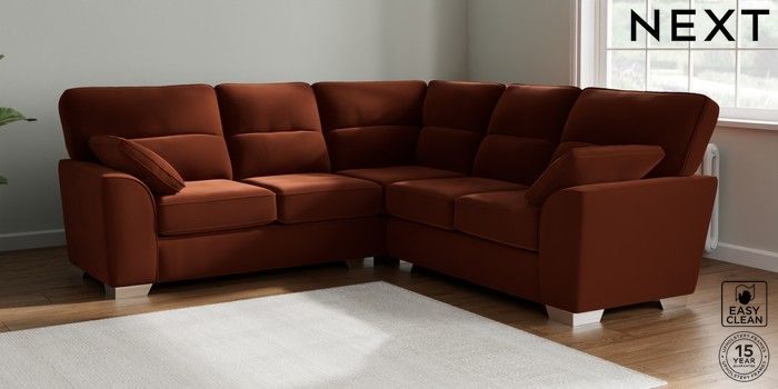 7.3.1 Buy Stamford Highback Medium Corner Sofa - Universal Plush Velvet Easy Clean Ginger Orange Large Square Angle - Chrome Metal from the Seasons online shop Click here to use our website with more accessibility support, for example screen readers