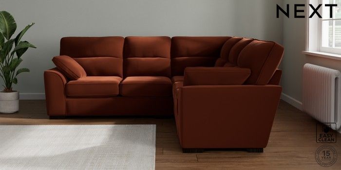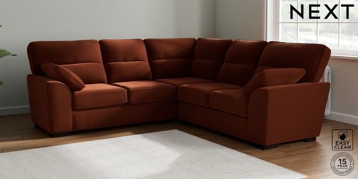 7.2.10 Buy Stamford Highback Medium Corner Sofa - Universal Plush Velvet Easy Clean Ginger Orange Large Square Angle - Dark from the Seasons online shop Click here to use our website with more accessibility support, for example screen readers