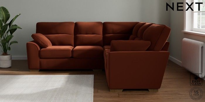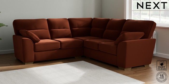 7.2.10 Buy Stamford Highback Medium Corner Sofa - Universal Plush Velvet Easy Clean Ginger Orange Large Square Angle - Mid from the Seasons online shop Click here to use our website with more accessibility support, for example screen readers