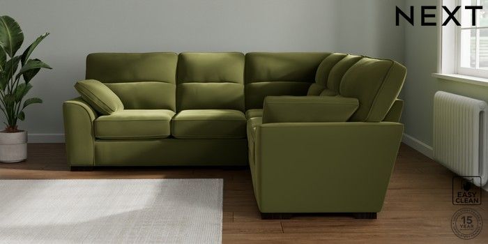 7.2.10 Buy Stamford Highback Medium Corner Sofa - Universal Plush Velvet Easy Clean Mid Olive Green Large Square Angle - Dark from the Seasons online shop Click here to use our website with more accessibility support, for example screen readers
