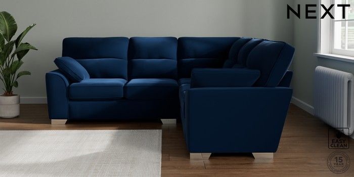 7.3.1 Buy Stamford Highback Medium Corner Sofa - Universal Plush Velvet Easy Clean Navy Blue Large Square Angle - Chrome Metal from the Seasons online shop Click here to use our website with more accessibility support, for example screen readers