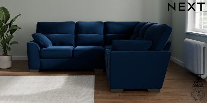 7.3.1 Buy Stamford Highback Medium Corner Sofa - Universal Plush Velvet Easy Clean Navy Blue Large Square Angle - Gunmetal from the Seasons online shop Click here to use our website with more accessibility support, for example screen readers