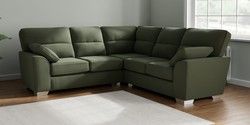 7.3.1 Buy Stamford Highback Medium Corner Sofa - Universal Relaxed Linen Look Dark Green Large Square Angle - Chrome Metal from the Seasons online shop Click here to use our website with more accessibility support, for example screen readers