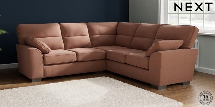 7.2.10 Buy Stamford Highback Medium Corner Sofa - Universal Relaxed Linen Look Light Rust Brown Large Square Angle - Gunmetal from the Seasons online shop Click here to use our website with more accessibility support, for example screen readers