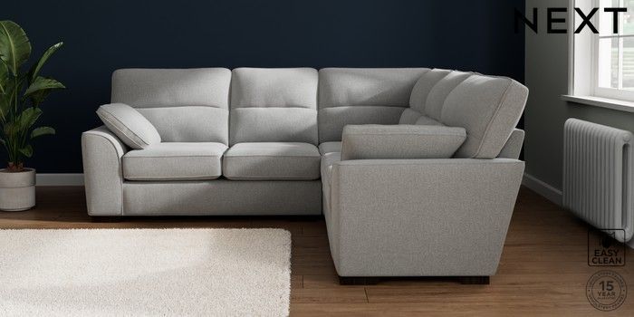 7.2.10 Buy Stamford Highback Medium Corner Sofa - Universal Tweedy Blend Easy Clean Light Silver Grey Large Square Angle - Dark from the Seasons online shop Click here to use our website with more accessibility support, for example screen readers
