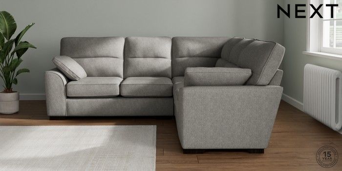 7.2.10 Buy Stamford Highback Medium Corner Sofa - Universal Tweedy Chenille Mid Grey Large Square Angle - Dark from the Seasons online shop Click here to use our website with more accessibility support, for example screen readers