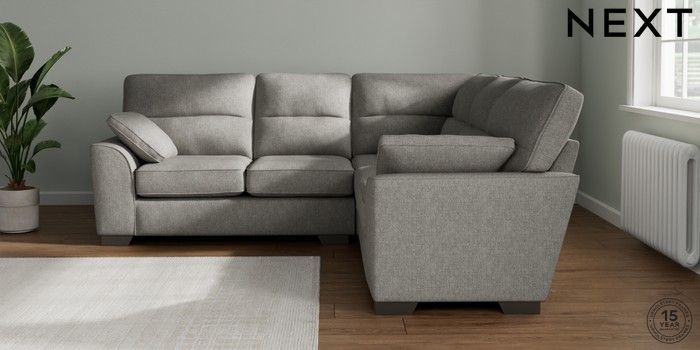 7.2.10 Buy Stamford Highback Medium Corner Sofa - Universal Tweedy Chenille Mid Grey Large Square Angle - Gunmetal from the Seasons online shop Click here to use our website with more accessibility support, for example screen readers