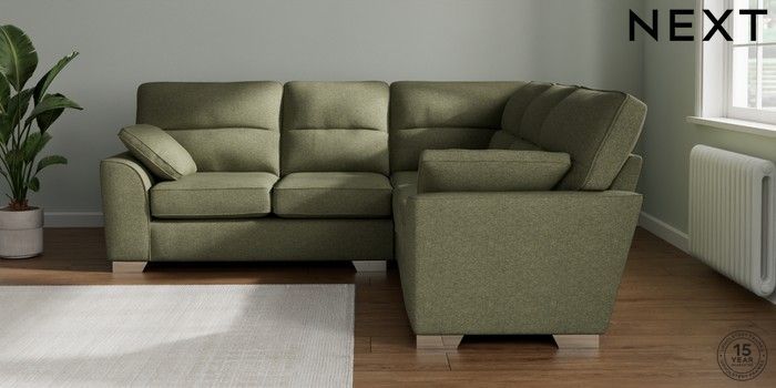 7.3.1 Buy Stamford Highback Medium Corner Sofa - Universal Tweedy Chenille Mid Moss Green Large Square Angle - Chrome Metal from the Seasons online shop Click here to use our website with more accessibility support, for example screen readers