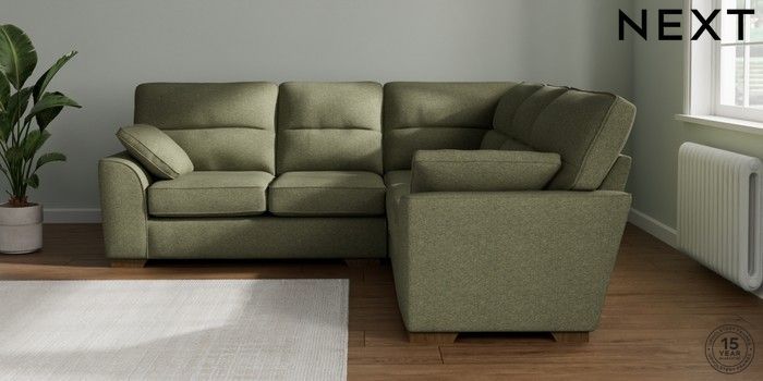7.2.10 Buy Stamford Highback Medium Corner Sofa - Universal Tweedy Chenille Mid Moss Green Large Square Angle - Mid from the Seasons online shop Click here to use our website with more accessibility support, for example screen readers