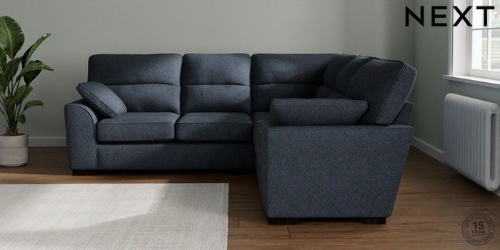 7.2.10 Buy Stamford Highback Medium Corner Sofa - Universal Tweedy Chenille Navy Blue Large Square Angle - Dark from the Seasons online shop Click here to use our website with more accessibility support, for example screen readers