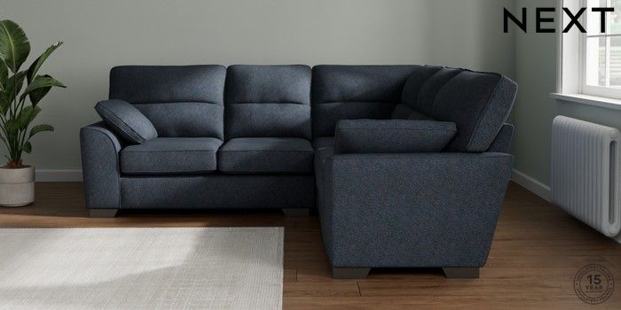 7.3.1 Buy Stamford Highback Medium Corner Sofa - Universal Tweedy Chenille Navy Blue Large Square Angle - Gunmetal from the Seasons online shop Click here to use our website with more accessibility support, for example screen readers