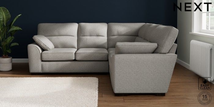 7.2.10 Buy Stamford Highback Medium Corner Sofa - Universal Woven Chenille Easy Clean Light Grey Large Square Angle - Dark from the Seasons online shop Click here to use our website with more accessibility support, for example screen readers