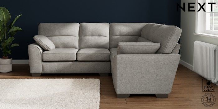 7.2.10 Buy Stamford Highback Medium Corner Sofa - Universal Woven Chenille Easy Clean Light Grey Large Square Angle - Gunmetal from the Seasons online shop Click here to use our website with more accessibility support, for example screen readers