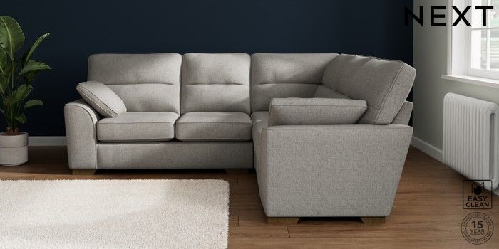 7.2.10 Buy Stamford Highback Medium Corner Sofa - Universal Woven Chenille Easy Clean Light Grey Large Square Angle - Mid from the Seasons online shop Click here to use our website with more accessibility support, for example screen readers