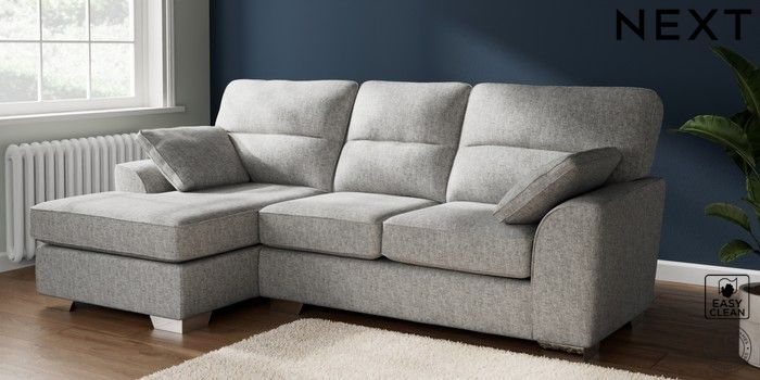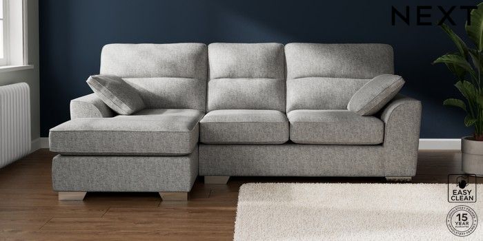 7.2.10 Buy Stamford Highback Medium Sofa Chaise - Left Hand Chunky Boucle Easy Clean Light Grey Large Square Angle - Chrome Metal from the Seasons online shop Click here to use our website with more accessibility support, for example screen readers