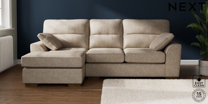 7.2.10 Buy Stamford Highback Medium Sofa Chaise - Left Hand Chunky Boucle Easy Clean Mid Natural Large Square Angle - Mid from the Seasons online shop Click here to use our website with more accessibility support, for example screen readers