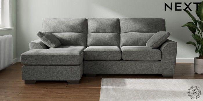 7.2.10 Buy Stamford Highback Medium Sofa Chaise - Left Hand Chunky Chenille Dark Grey Large Square Angle - Gunmetal from the Seasons online shop Click here to use our website with more accessibility support, for example screen readers