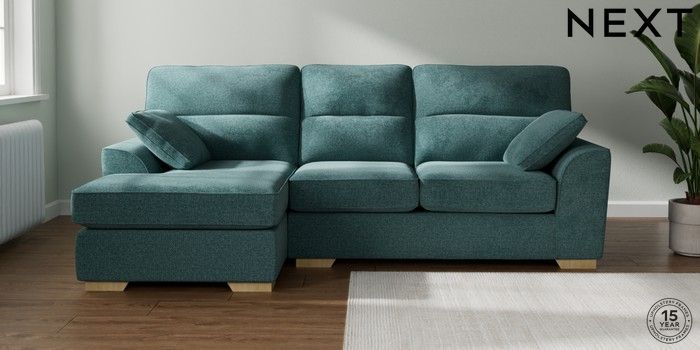 7.2.10 Buy Stamford Highback Medium Sofa Chaise - Left Hand Chunky Chenille Mid Teal Green Large Square Angle - Light from the Seasons online shop Click here to use our website with more accessibility support, for example screen readers