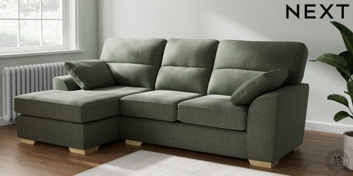 7.2.10 Buy Stamford Highback Medium Sofa Chaise - Left Hand Chunky Texture Mid Forest Green Large Square Angle - Light from the Seasons online shop Click here to use our website with more accessibility support, for example screen readers