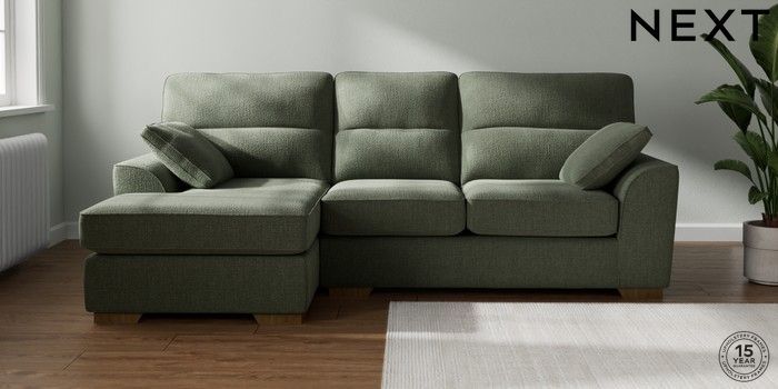 7.2.10 Buy Stamford Highback Medium Sofa Chaise - Left Hand Chunky Texture Mid Forest Green Large Square Angle - Mid from the Seasons online shop Click here to use our website with more accessibility support, for example screen readers