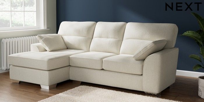 7.2.10 Buy Stamford Highback Medium Sofa Chaise - Left Hand Chunky Texture Oyster Large Square Angle - Chrome Metal from the Seasons online shop Click here to use our website with more accessibility support, for example screen readers