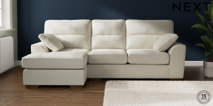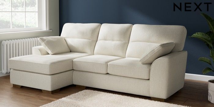 7.2.10 Buy Stamford Highback Medium Sofa Chaise - Left Hand Chunky Texture Oyster Large Square Angle - Mid from the Seasons online shop Click here to use our website with more accessibility support, for example screen readers