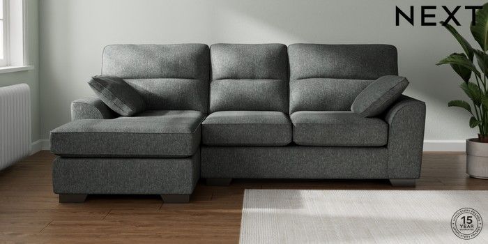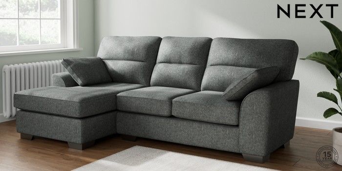 7.2.10 Buy Stamford Highback Medium Sofa Chaise - Left Hand Cotswold Chenille Dark Grey Large Square Angle - Gunmetal from the Seasons online shop Click here to use our website with more accessibility support, for example screen readers
