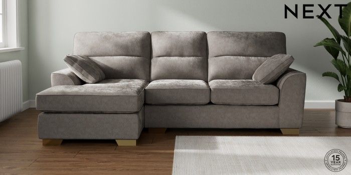 7.3.1 Buy Stamford Highback Medium Sofa Chaise - Left Hand Distressed Velour French Grey Large Square Angle - Brushed Brass from the Seasons online shop Click here to use our website with more accessibility support, for example screen readers
