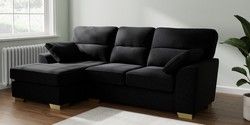7.2.10 Buy Stamford Highback Medium Sofa Chaise - Left Hand Fine Chenille Easy Clean Black Large Square Angle - Brushed Brass from the Seasons online shop Click here to use our website with more accessibility support, for example screen readers