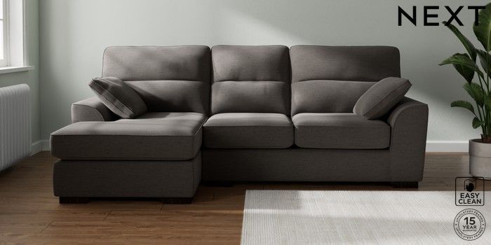 7.2.10 Buy Stamford Highback Medium Sofa Chaise - Left Hand Fine Chenille Easy Clean Dark Smoke Grey Large Square Angle - Dark from the Seasons online shop Click here to use our website with more accessibility support, for example screen readers