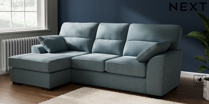 7.2.10 Buy Stamford Highback Medium Sofa Chaise - Left Hand Fine Chenille Easy Clean Mid Blue Large Square Angle - Dark from the Seasons online shop Click here to use our website with more accessibility support, for example screen readers