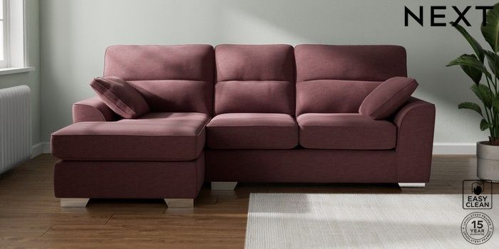 7.3.1 Buy Stamford Highback Medium Sofa Chaise - Left Hand Fine Chenille Easy Clean Mid Mulberry Purple Large Square Angle - Chrome Metal from the Seasons online shop Click here to use our website with more accessibility support, for example screen readers