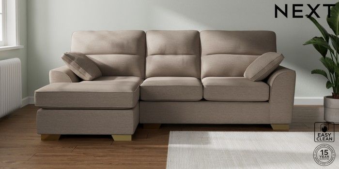 7.3.1 Buy Stamford Highback Medium Sofa Chaise - Left Hand Fine Chenille Easy Clean Mid Taupe Brown Large Square Angle - Brushed Brass from the Seasons online shop Click here to use our website with more accessibility support, for example screen readers