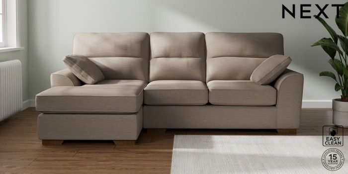 7.2.10 Buy Stamford Highback Medium Sofa Chaise - Left Hand Fine Chenille Easy Clean Mid Taupe Brown Large Square Angle - Mid from the Seasons online shop Click here to use our website with more accessibility support, for example screen readers