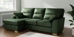 7.2.10 Buy Stamford Highback Medium Sofa Chaise - Left Hand Luxe Chenille Dark Green Large Square Angle - Brushed Brass from the Seasons online shop Click here to use our website with more accessibility support, for example screen readers
