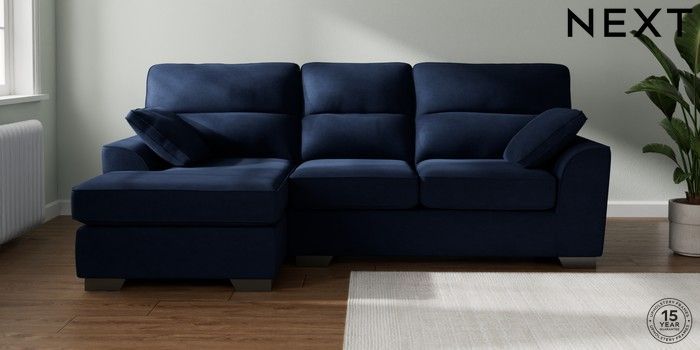 7.2.10 Buy Stamford Highback Medium Sofa Chaise - Left Hand Luxe Chenille Navy Blue Large Square Angle - Gunmetal from the Seasons online shop Click here to use our website with more accessibility support, for example screen readers